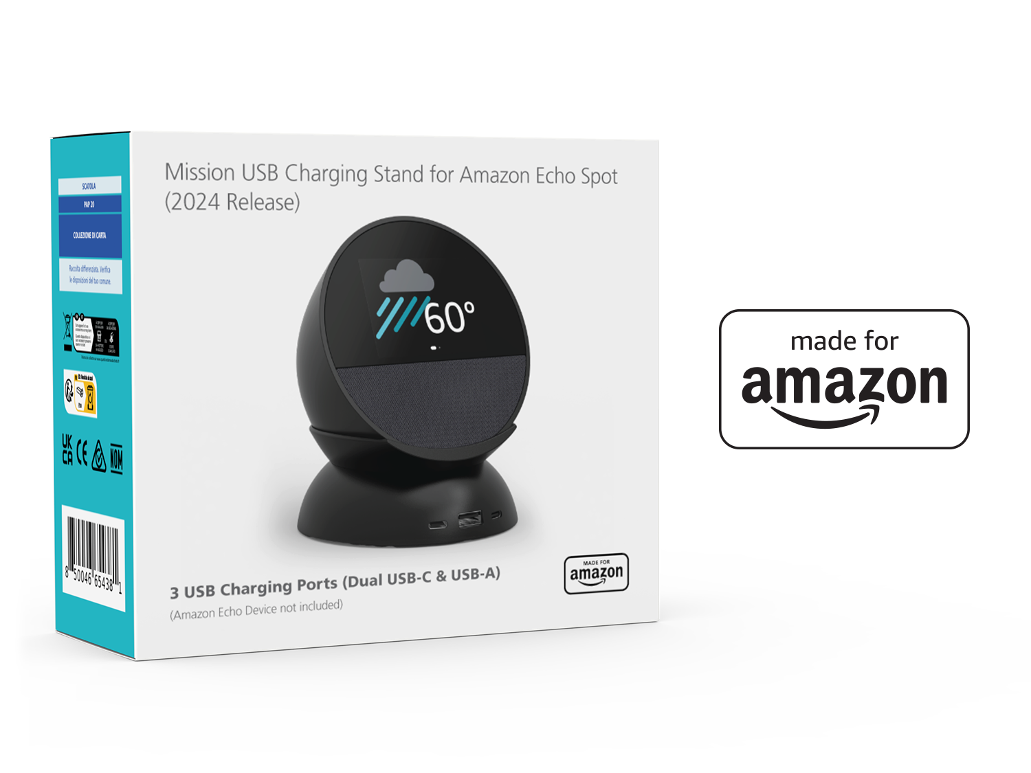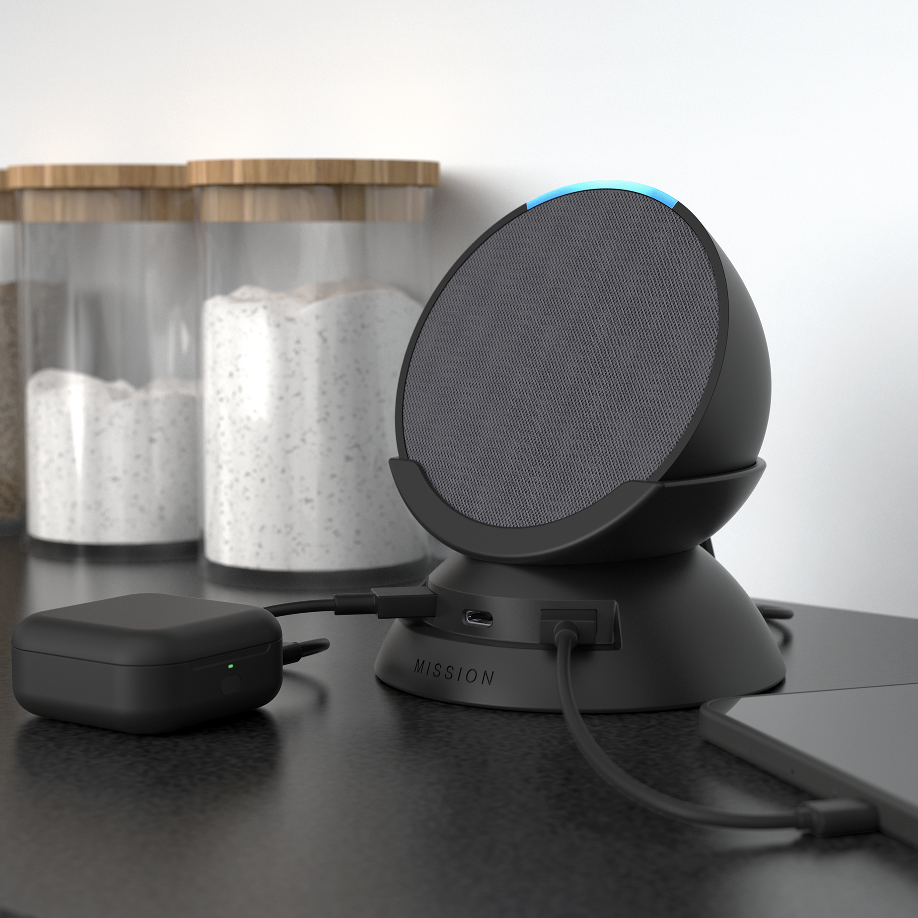 Mission works closely with the Amazon Devices team to define, design, and deliver its industry leading collection of charging stands for Amazon Echo products.